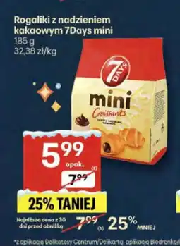 | Rogalik 7Days z nadzieniem o smaku kakaowym, karmelowym, szampańskim | Delikatesy Centrum | 2,79 zł | 1,79 zł | 1,00 zł Rabat | 20 października 2022 | 26 października 2022 | |