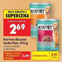 Biedronka Karma dla psa z kurczakiem Activ Pet ofertaKarma dla psa z kurczakiem Activ PetBiedronka17,99 zł12 lutego 202614 lutego 2026