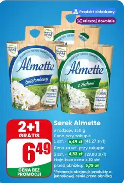 Wiele osób planuje zakupy z wyprzedzeniem i regularnie sprawdza, czy Almette będzie objęty promocją w najbliższych dniach. Na Gazetki.pl udostępniamy oferty z tygodniowym wyprzedzeniem, co pozwala lepiej zaplanować zakupy i uniknąć niepotrzebnych wydatków. Warto pamiętać, że niektóre promocje są dostępne tylko stacjonarnie i nie obowiązują w sklepach internetowych.