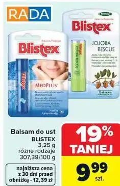 | Balsam do ust BLISTEX 3,25 g różne rodzaje 307,38/100 g | Carrefour | 12,39 zł | 9,99 zł | 2,40 zł Rabat | 20 kwietnia 2026 | 26 kwietnia 2026 | |