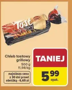 | Chleb tostowy pszenny 250 g | Carrefour | 3,39 zł | 2,99 zł | 0,40 zł Rabat | 27 października 2025 | 08 listopada 2025 | |