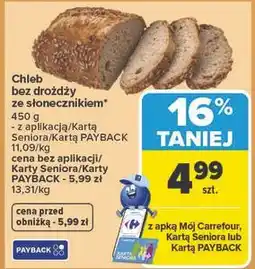 | Chleb bez drożdży ze słonecznikiem 450 g | Carrefour | 5,99 zł | 4,99 zł | 16% taniej | 12 kwietnia 2026 | 18 kwietnia 2026 | |