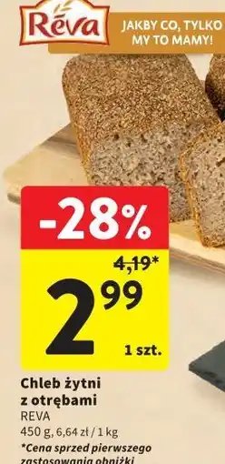 | Chleb żytni z otrębami Reva 1 szt | Intermarche | 4,19 zł | 2,99 zł | -28% | 17 czerwca 2025 | 25 czerwca 2025 | |