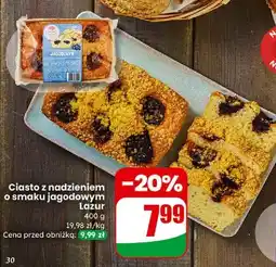 | Ciasto z nadzieniem o smaku jagodowym Lazur | Dino | 9,99 zł | 7,99 zł | 2,00 zł Rabat | 28 stycznia 2026 | 03 lutego 2026 | |