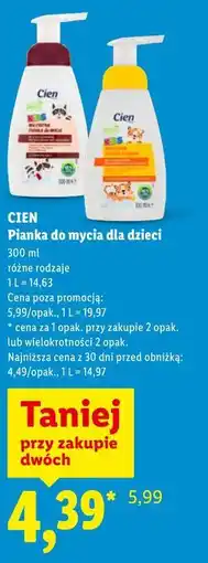 2Lidl CIEN Pianka do mycia dla dzieci ofertaCIEN Pianka do mycia dla dzieciLidl5,99 zł4,39 zł1,60 zł Rabat23 lutego 202628 lutego 2026 Przejrzyj ofertę