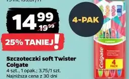 | Szczoteczka do zębów Twister Soft Colgate 4 szt | Netto | 19,99 zł | 15,99 zł | -20% | 24 kwietnia 2025 | 30 kwietnia 2025 | |