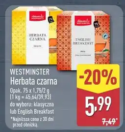 | Westminister Opak. 75szt. czarna klasyczna lub English breakfast | ALDI | 4,99 zł | 25 stycznia 2023 | 29 stycznia 2023 | |||