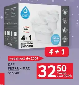 | 2 | Dafi Filtr Unimax 1 kompl. | Selgros | 39,98 zł | 32,50 zł | 4+1 | 22 stycznia 2026 | 04 lutego 2026 | Przejrzyj ofertę | |