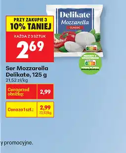 Biedronka Ser Mozzarella Delikate ofertaSer Mozzarella Delikate 125 g 2+2 gratisBiedronka2,99 zł1,49 zł2+2 gratis29 grudnia 202503 stycznia 2026