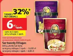 W tym tygodniu dostępnych jest kilka ofert na Dziugas, m.in. u Auchan oraz w innych popularnych sieciach. Możesz znaleźć akcje typu 1+1 gratis, 25% taniej lub obniżki na Ser twardy Džiugas, Ser dojrzewający tarty twardy Dziugas i Schab wieprzowy bez kości w plastrach. Dzięki filtrom łatwo wybierzesz interesujący Cię typ opakowania, gramaturę lub preferowane miejsce zakupu.