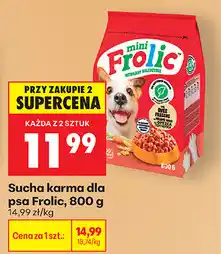 | Sucha karma dla psa Frolic 800 g | Biedronka | 14,99 zł | 11,99 zł | 3,00 zł Rabat | 16 kwietnia 2026 | 18 kwietnia 2026 | |