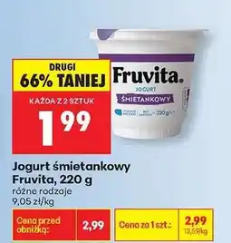 4Biedronka Jogurt śmietankowy Fruvita ofertaJogurt śmietankowy Fruvita 220 gBiedronka2,99 zł1,99 zł1,00 zł Rabat19 stycznia 202625 stycznia 2026 Przejrzyj ofertę
