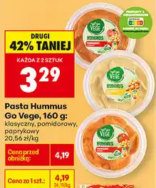 Biedronka Pasta Hummus Go Vege, 160 g: klasyczny, pomidorowy, paprykowy oferta