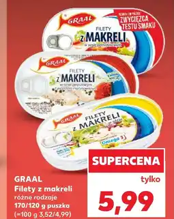 | GRAAL Filety z makreli 170 g | Kaufland | 6,66 zł | 4,99 zł | 1,67 zł Rabat | 31 sierpnia 2023 | 06 września 2023 | |