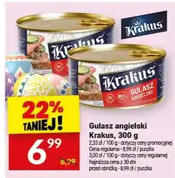 Biedronka Gulasz angielski Krakus, 300 g ofertaGulasz angielski Krakus, 300 gBiedronka5,99 zł02 marca 202607 marca 2026
