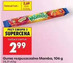 | Guma rozpuszczalna wieloowocowa Mamba | Biedronka | 2,79 zł | 02 czerwca 2025 | 07 czerwca 2025 | |||