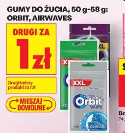 Biedronka Gumy do żucia Orbit, Airwaves ofertaGumy do żucia Orbit, Airwaves 50-58 gBiedronka1,00 zł05 marca 202607 marca 2026