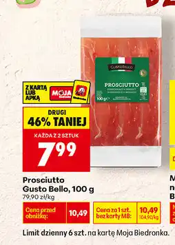 1Biedronka Prosciutto Gusto Bello ofertaProsciutto Gusto Bello 100 gBiedronka7,99 zł05 lutego 202607 lutego 2026 Przejrzyj ofertę