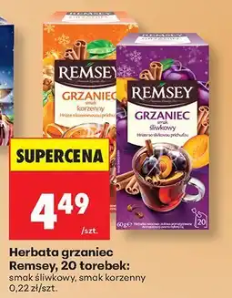 | Herbata grzaniec Remsey, 20 torebek (smak śliwkowy, smak korzenny) | Biedronka | 4,49 zł | 17 grudnia 2025 | 20 grudnia 2025 | |||