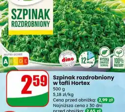 | Szpinak rozdrobniony Hortex | Dino | 2,99 zł | 2,59 zł | 0,40 zł Rabat | 25 lutego 2026 | 03 marca 2026 | |