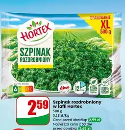 | Szpinak rozdrobniony w tafli Hortex 500g | Dino | 3,49 zł | 24 września 2025 | 30 września 2025 | |||