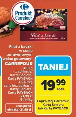 | Filet z kaczki wolno gotowany z żurawiną 430 g | Carrefour | 29,99 zł | 21,99 zł | 8,00 zł Rabat | 11 grudnia 2023 | 17 grudnia 2023 | |