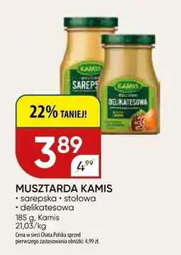 | Musztarda Kamis sarepska, stołowa, delikatesowa | Chata Polska | 3,89 zł | 26 lutego 2026 | 08 marca 2026 | |||