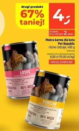 | Mokra karma dla kota Pet Republic 400 g | Dealz | 6,00 zł | 4,00 zł | 2,00 zł Rabat | 30 kwietnia 2025 | 07 maja 2025 | |