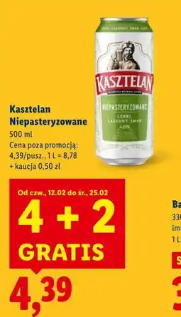| Piwo Kasztelan Niepasteryzowane 500 ml | Lidl | 4,39 zł | 2,93 zł | 1,46 zł Rabat | 12 lutego 2026 | 14 lutego 2026 | |