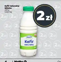 | Kefir naturalny Miletto 400 g | Netto | 2,75 zł | 2,39 zł | -13% | 09 września 2024 | 14 września 2024 | |