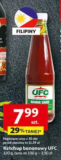 | Ketchup bananowy ufc | Auchan | 11,29 zł | 9,99 zł | 1,30 zł Rabat | 12 stycznia 2023 | 18 stycznia 2023 | |