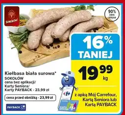 | Kiełbasa biała surowa Sokołów | Carrefour | 23,99 zł | 19,99 zł | 4,00 zł Rabat | 05 marca 2026 | 07 marca 2026 | |