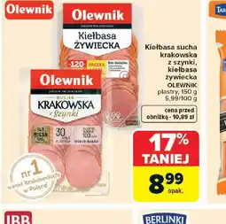 Kiełbasa sucha krakowska z szynki, kiełbasa żywiecka OLEWNIK plastry