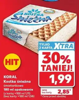 | Koral Kostka śnieżna Lody śmietankowe 180 ml | Kaufland | 2,18 zł | 1,89 zł | 0,29 zł Rabat | 27 kwietnia 2022 | 04 maja 2022 | |
