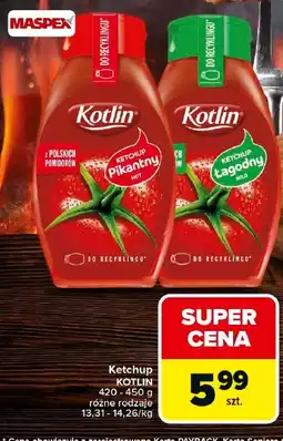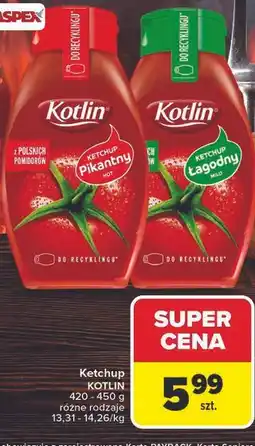| Ketchup KOTLIN 450 g | Carrefour | 6,59 zł | 4,99 zł | 1,60 zł Rabat | 18 grudnia 2023 | 23 grudnia 2023 | |