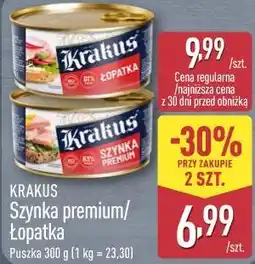 | KRAKUS Szynka premium/Łopatka | ALDI | 9,99 zł | 6,99 zł | 3,00 zł Rabat | 23 kwietnia 2026 | 26 kwietnia 2026 | |