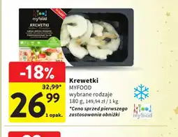 | 1 | MYFOOD Krewetki 180 g | Intermarche | 32,99 zł | 26,99 zł | -18% | 18 grudnia 2025 | 23 grudnia 2025 | Przejrzyj ofertę | |