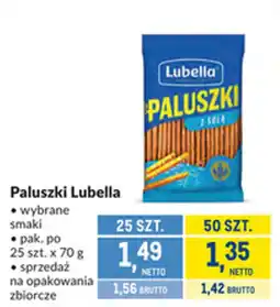 | Paluszki Paluszki z solą Lubella | Makro | 1,35 zł | 05 sierpnia 2025 | 01 września 2025 | |||