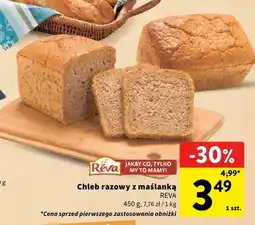 | Chleb razowy Reva z maślanką 465g | Intermarche | 2,99 zł | 2,49 zł | 0,50 zł Rabat | 13 kwietnia 2021 | 19 kwietnia 2021 |
