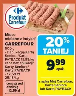 | Mięso mielone z indyka* CARREFOUR | Carrefour | 12,59 zł | 9,99 zł | 2,60 zł Rabat | 20 kwietnia 2026 | 26 kwietnia 2026 | |