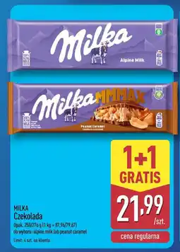 | Czekolada Milka MMMAX Peanut Caramel 1+1 gratis | ALDI | 21,99 zł | 05 listopada 2025 | 05 listopada 2025 | |||