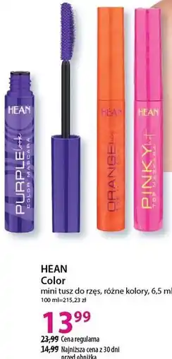 Hebe HEAN Color mini tusz do rzęs, różne kolory ofertaHEAN Color mini tusz do rzęs, różne kolory 6,5 mlHebe23,99 zł13,99 zł10,00 zł Rabat18 kwietnia 202602 czerwca 2026