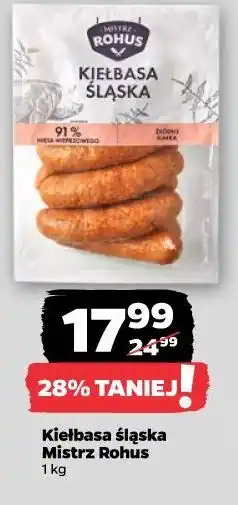| Kiełbasa Śląska Mistrz Rohus | Netto | 24,99 zł | 17,99 zł | 7,00 zł Rabat | 24 listopada 2025 | 29 listopada 2025 | |