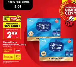 | Masło Ekstra Mleczna Dolina 200 g | Biedronka | 6,99 zł | 2,99 zł | -57% przy zakupie 3 | 29 grudnia 2025 | 03 stycznia 2026 | |