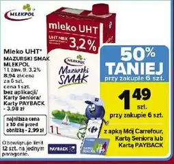| Mleko UHT* Carrefour 1l, zaw. tl. 1,5% | Carrefour Market | 2,39 zł | 03 lipca 2023 | 08 lipca 2023 | |||