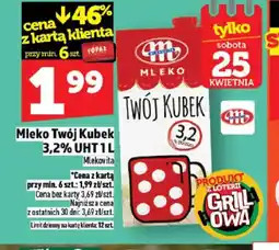 | Mleko Twój Kubek 3,2% UHT 1 l Mlekovita | Topaz | 2,99 zł | 27 grudnia 2025 | 31 grudnia 2025 | |||