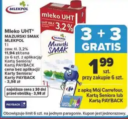 | Mleko UHT Mazurski Smak Mlekpol 1 l | Carrefour | 3,98 zł | 1,99 zł | 1,99 zł Rabat | 05 marca 2026 | 07 marca 2026 | |
