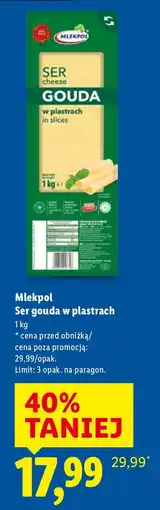 | Ser gouda w plastrach Mlekpol | Lidl | 17,99 zł | 19 stycznia 2026 | 21 stycznia 2026 | |||