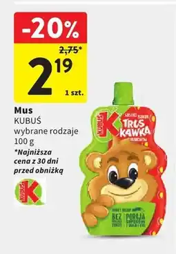 | Mus 100% 80-100g | Intermarche | 1,99 zł | 1,69 zł | 0,30 zł Rabat | 31 sierpnia 2021 | 06 września 2021 | |