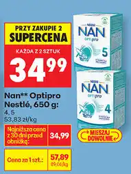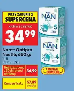 2Biedronka Nan Optipro Nestlé, 650 g, 5 ofertaNan Optipro Nestlé, 650 g, 5Biedronka57,89 zł34,99 zł22,90 zł Rabat19 stycznia 202625 stycznia 2026 Przejrzyj ofertę